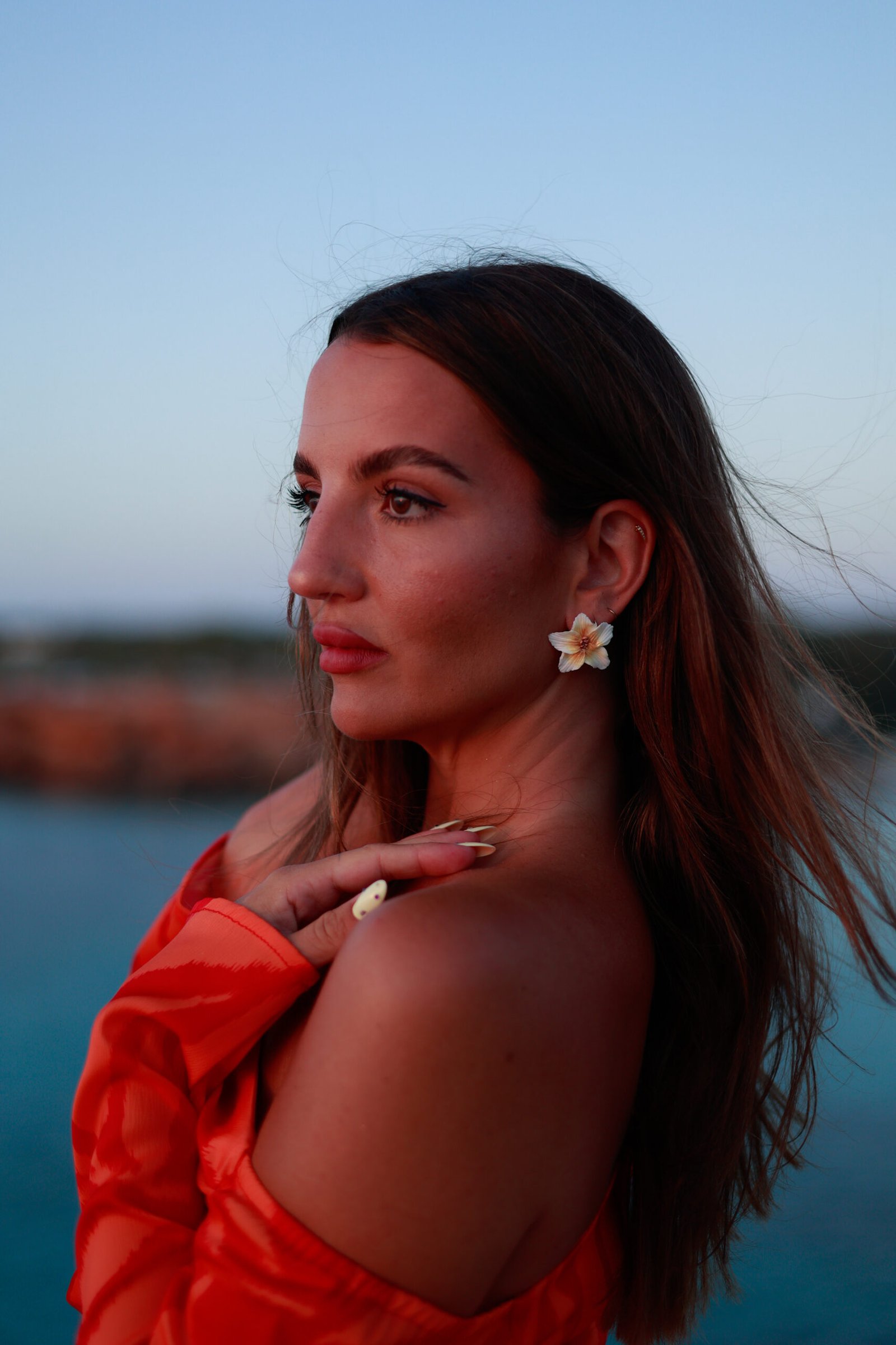 Los Pendientes Flor de Hibisco evocan la belleza tropical y el encanto de los atardeceres de verano. Su forma floral realista y sus suaves tonos melocotón, coral y crema reflejan la luz de manera delicada, aportando calidez y estilo a cualquier look.